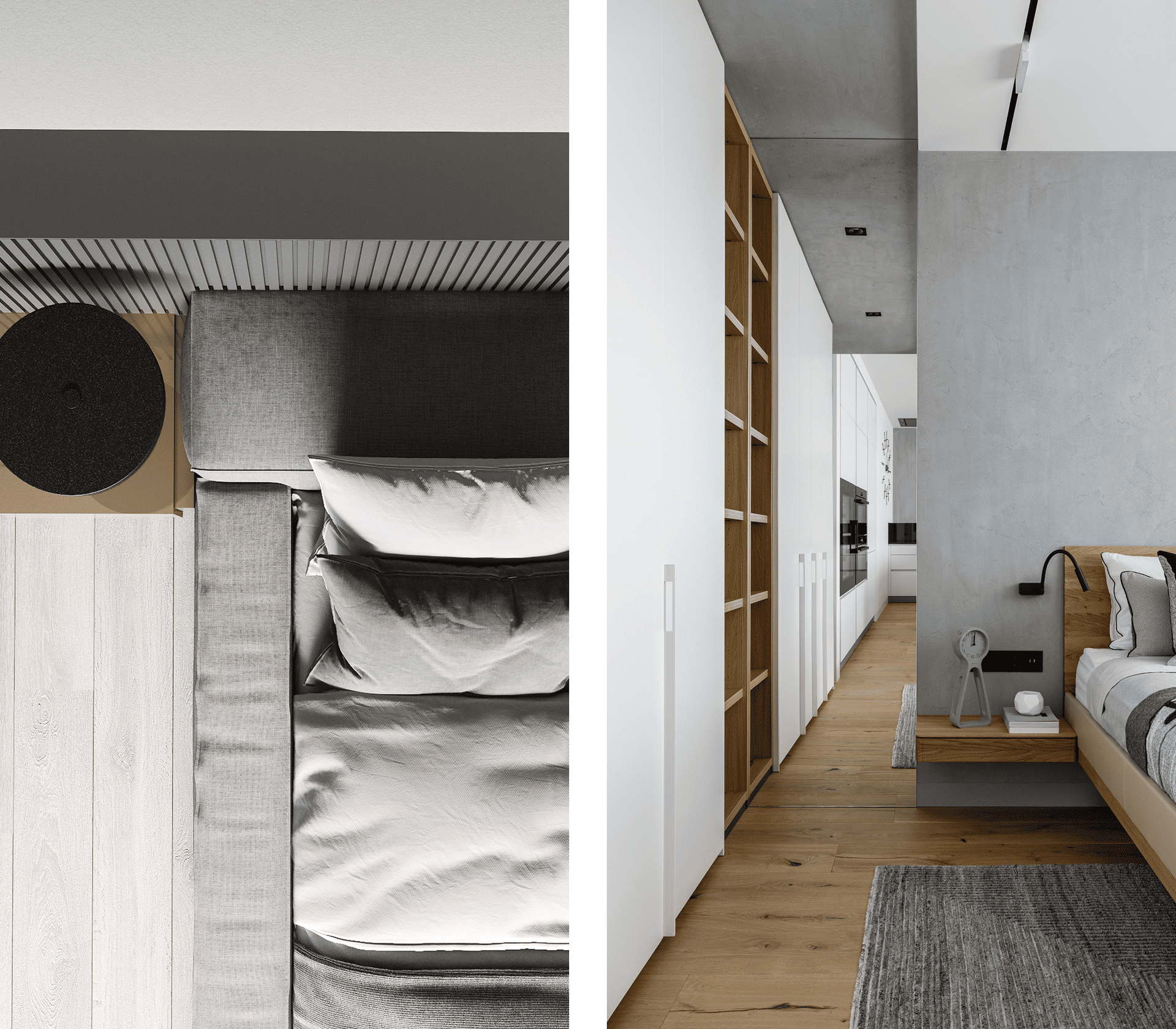 В проекте квартиры для мужчины мы выбрали «парящую» кровать от Team 7. Какие еще приемы мы использовали в этом дизайн-проекте, читайте в кейсе «Функциональный интерьер для мужчины».