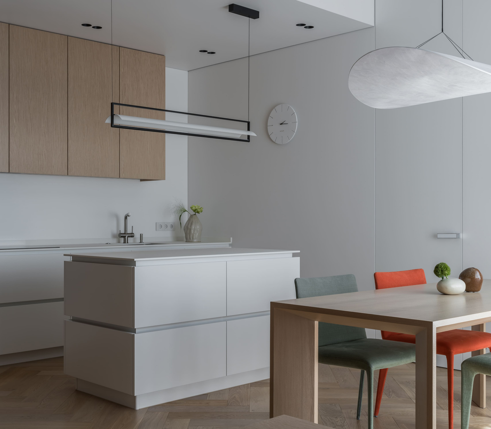 В ответ на пожелания родилась концепция интерьера в стиле минимализм с оттенками классики. В приоритете была элегантная сдержанность, где уют создается за счет фактур и натуральных материалов.