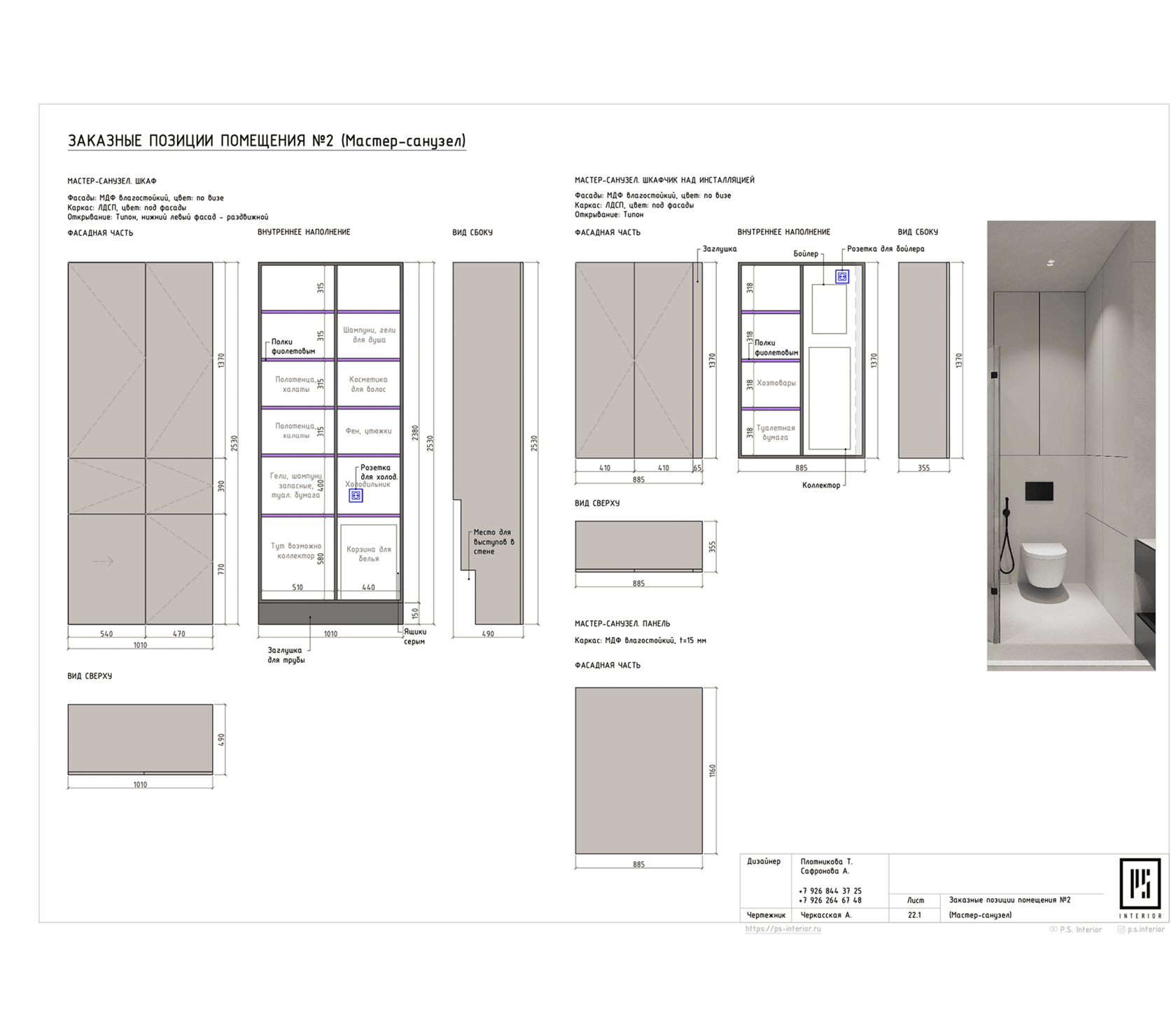 Рабочая документация — это технический проект для строителей, комплект чертежей и схем на 100 страниц. Мы разрабатываем детализированные планы размещения всех инженерных систем и мебели: от электрооборудования и канализации до открытия шкафчиков и хранения полотенец и косметики.
