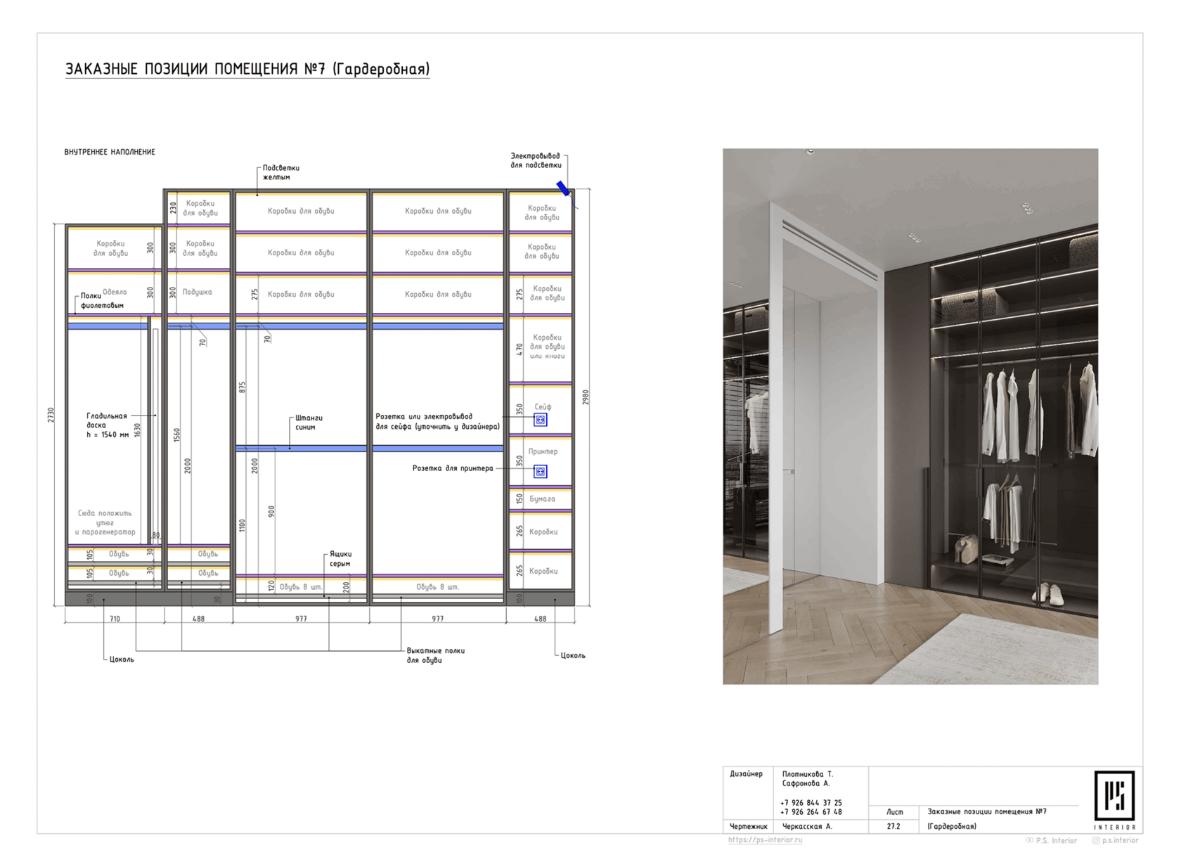 Отдельно прорабатываем систему хранения. Если клиенту нужна вместительная гардеробная, мы детально прорабатываем, сколько места займут его вещи.